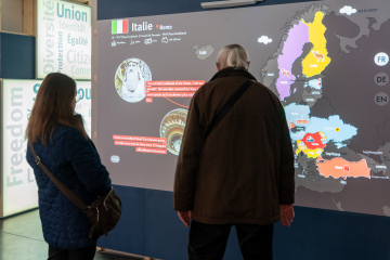 L’exposition permanente retrace l’histoire de la construction européenne après la Seconde Guerre mondiale. Espace de connaissance et d’échanges, elle explique le rôle et le fonctionnement des institutions européennes tout en mettant en lumière quelques figures pionnières de l’Europe et la place centrale de Strasbourg dans le projet européen. Une section consacrée à l’amitié franco-allemande et aux coopérations transfrontalières déployées dans l’espace du Rhin supérieur donne un aperçu de l’intégration européenne à l’échelle régionale et locale.